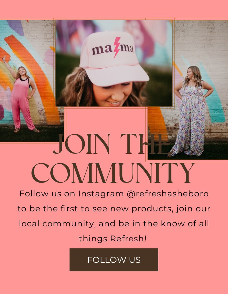 Refresh is Asheboro's upscale consignment shop, featuring quality clothing for all members of the family, as well as baby equipment. We are located at 326 W Salisbury St Asheboro, NC 27203. Our current hours are Monday- Friday 10 a.m.- 6 p.m. & Saturdays 10 a.m.- 5 p.m.